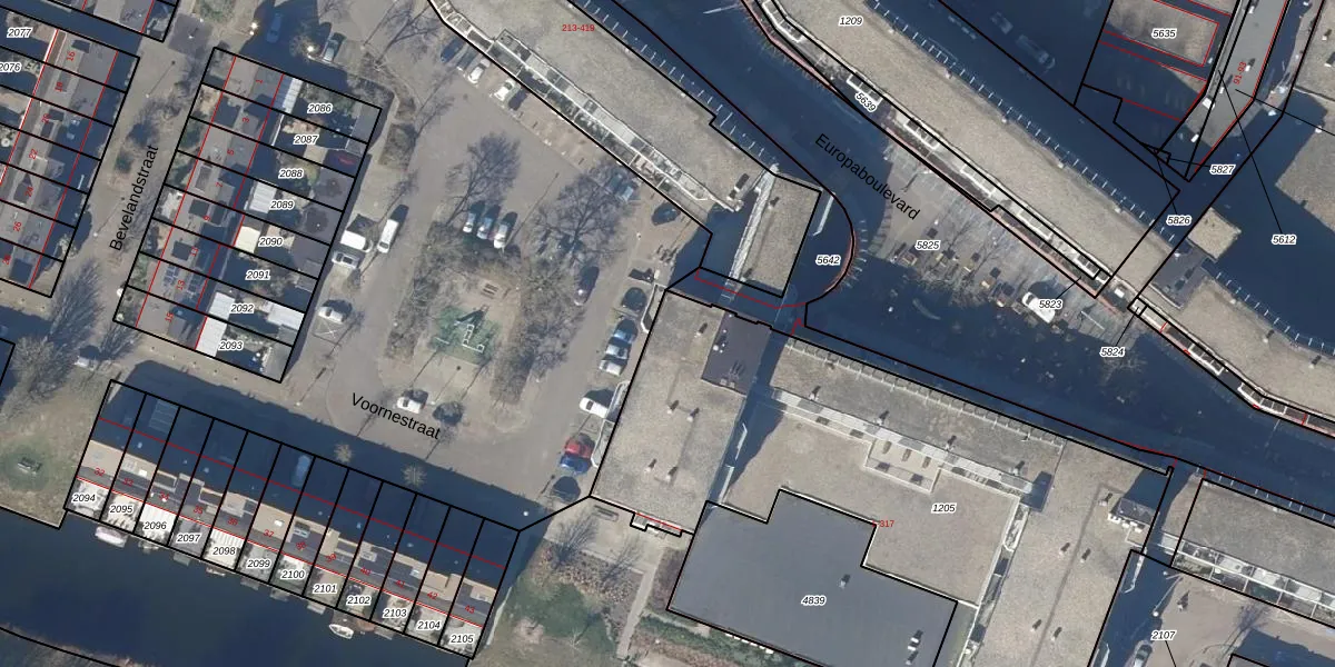 Het perceel waarop Europaboulevard 207 staat heeft een oppervlakte van 2594 m². Dit is een zeer groot perceel. De perceeloppervlakte wordt geregistreerd door het Kadaster. Gedetailleerde informatie over de maten van dit perceel kunt u vinden in het rapport Kadastrale kaart met maatvoering van Europaboulevard 207.