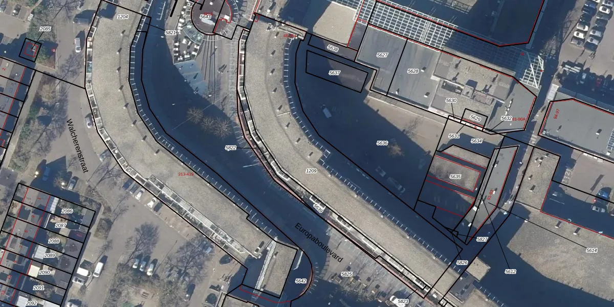 Het perceel waarop Europaboulevard 214 staat heeft een oppervlakte van 1770 m². Dit is een zeer groot perceel. De perceeloppervlakte wordt geregistreerd door het Kadaster. Gedetailleerde informatie over de maten van dit perceel kunt u vinden in het rapport Kadastrale kaart met maatvoering van Europaboulevard 214.