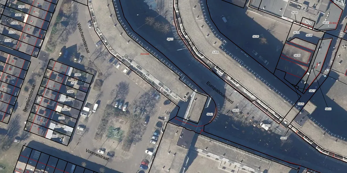 Het perceel waarop Europaboulevard 219 staat heeft een oppervlakte van 1642 m². Dit is een zeer groot perceel. De perceeloppervlakte wordt geregistreerd door het Kadaster. Gedetailleerde informatie over de maten van dit perceel kunt u vinden in het rapport Kadastrale kaart met maatvoering van Europaboulevard 219.