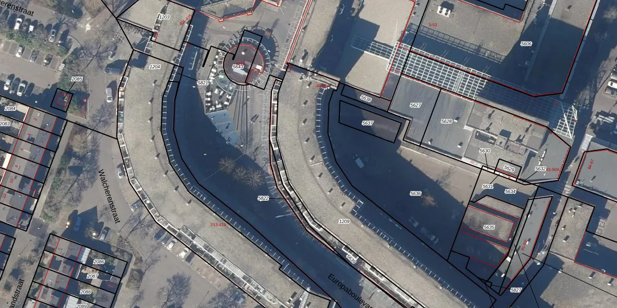 Het perceel waarop Europaboulevard 220 staat heeft een oppervlakte van 1770 m². Dit is een zeer groot perceel. De perceeloppervlakte wordt geregistreerd door het Kadaster. Gedetailleerde informatie over de maten van dit perceel kunt u vinden in het rapport Kadastrale kaart met maatvoering van Europaboulevard 220.
