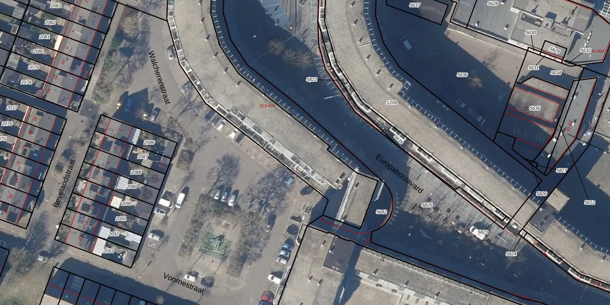 Het perceel waarop Europaboulevard 221 staat heeft een oppervlakte van 1642 m². Dit is een zeer groot perceel. De perceeloppervlakte wordt geregistreerd door het Kadaster. Gedetailleerde informatie over de maten van dit perceel kunt u vinden in het rapport Kadastrale kaart met maatvoering van Europaboulevard 221.