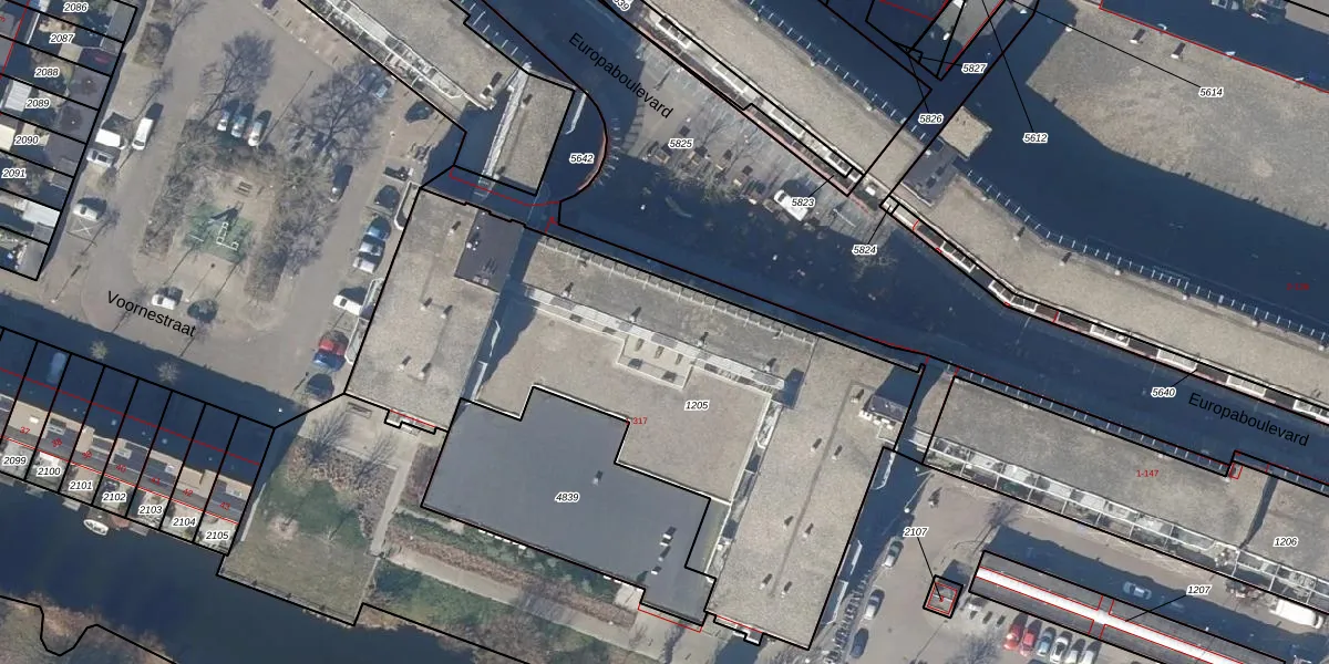 Het perceel waarop Europaboulevard 235 staat heeft een oppervlakte van 2594 m². Dit is een zeer groot perceel. De perceeloppervlakte wordt geregistreerd door het Kadaster. Gedetailleerde informatie over de maten van dit perceel kunt u vinden in het rapport Kadastrale kaart met maatvoering van Europaboulevard 235.