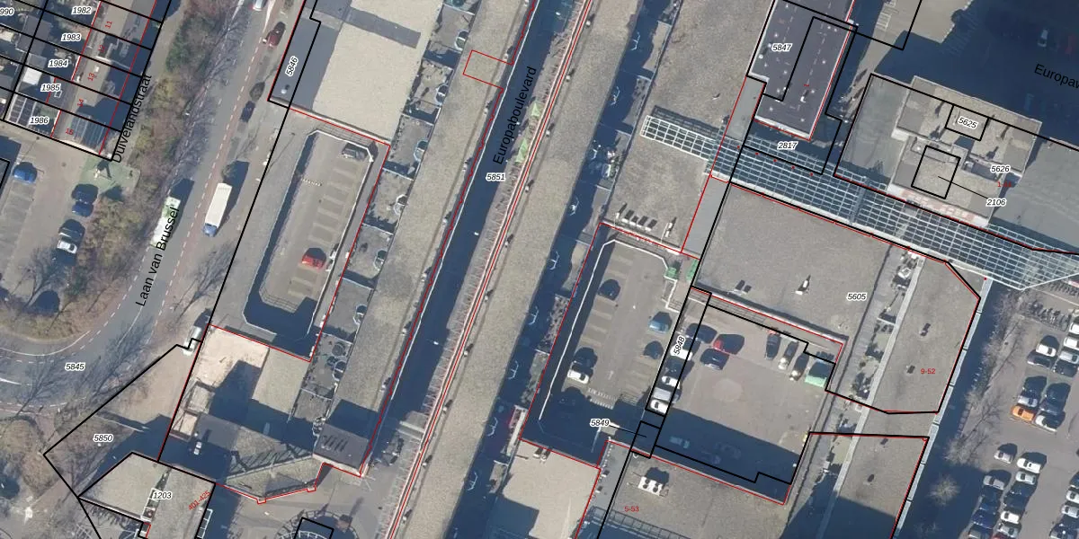 Het perceel waarop Europaboulevard 250 staat heeft een oppervlakte van 1,3 ha. Dit is een zeer groot perceel. De perceeloppervlakte wordt geregistreerd door het Kadaster. Gedetailleerde informatie over de maten van dit perceel kunt u vinden in het rapport Kadastrale kaart met maatvoering van Europaboulevard 250.