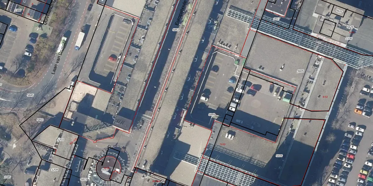 Het perceel waarop Europaboulevard 282 staat heeft een oppervlakte van 1,3 ha. Dit is een zeer groot perceel. De perceeloppervlakte wordt geregistreerd door het Kadaster. Gedetailleerde informatie over de maten van dit perceel kunt u vinden in het rapport Kadastrale kaart met maatvoering van Europaboulevard 282.