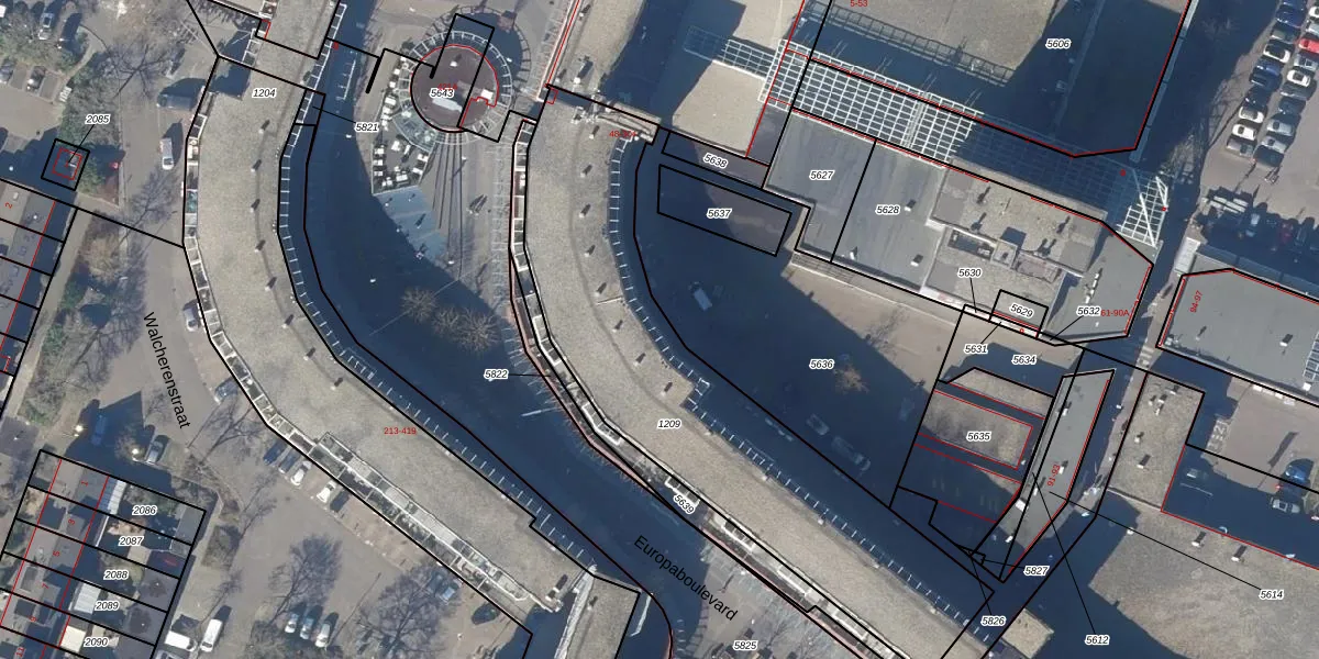 Het perceel waarop Europaboulevard 292 staat heeft een oppervlakte van 1770 m². Dit is een zeer groot perceel. De perceeloppervlakte wordt geregistreerd door het Kadaster. Gedetailleerde informatie over de maten van dit perceel kunt u vinden in het rapport Kadastrale kaart met maatvoering van Europaboulevard 292.