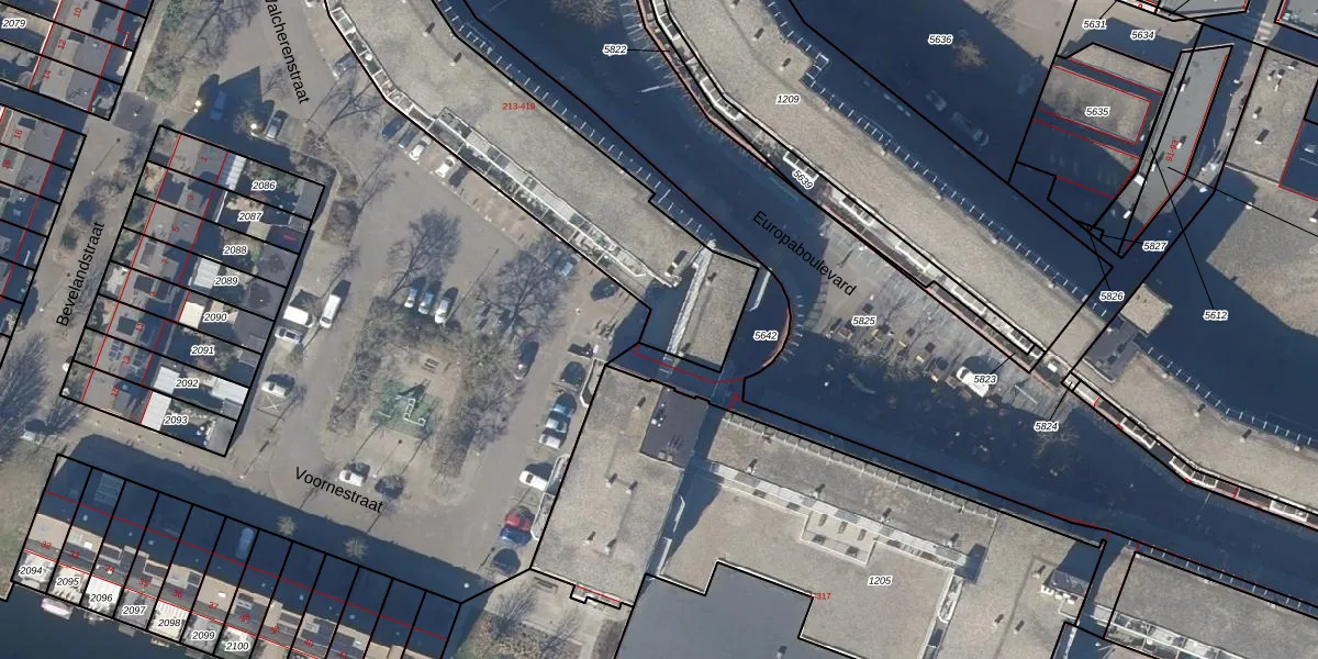 Het perceel waarop Europaboulevard 319 staat heeft een oppervlakte van 1642 m². Dit is een zeer groot perceel. De perceeloppervlakte wordt geregistreerd door het Kadaster. Gedetailleerde informatie over de maten van dit perceel kunt u vinden in het rapport Kadastrale kaart met maatvoering van Europaboulevard 319.