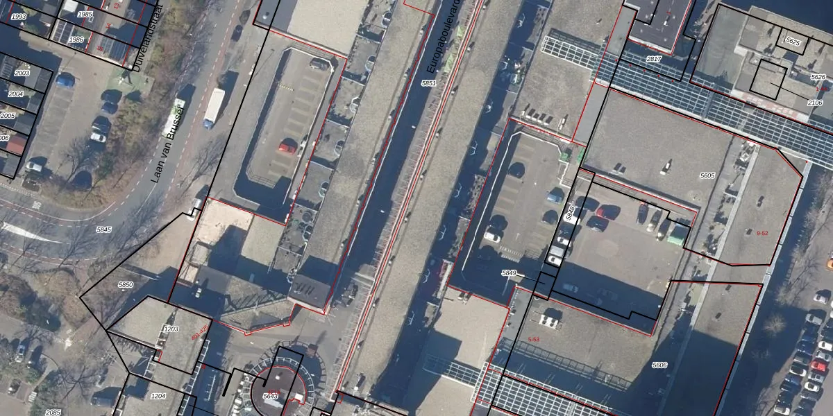 Het perceel waarop Europaboulevard 326 staat heeft een oppervlakte van 1,3 ha. Dit is een zeer groot perceel. De perceeloppervlakte wordt geregistreerd door het Kadaster. Gedetailleerde informatie over de maten van dit perceel kunt u vinden in het rapport Kadastrale kaart met maatvoering van Europaboulevard 326.