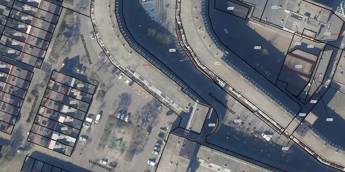 Het perceel waarop Europaboulevard 337 staat heeft een oppervlakte van 1642 m². Dit is een zeer groot perceel. De perceeloppervlakte wordt geregistreerd door het Kadaster. Gedetailleerde informatie over de maten van dit perceel kunt u vinden in het rapport Kadastrale kaart met maatvoering van Europaboulevard 337.