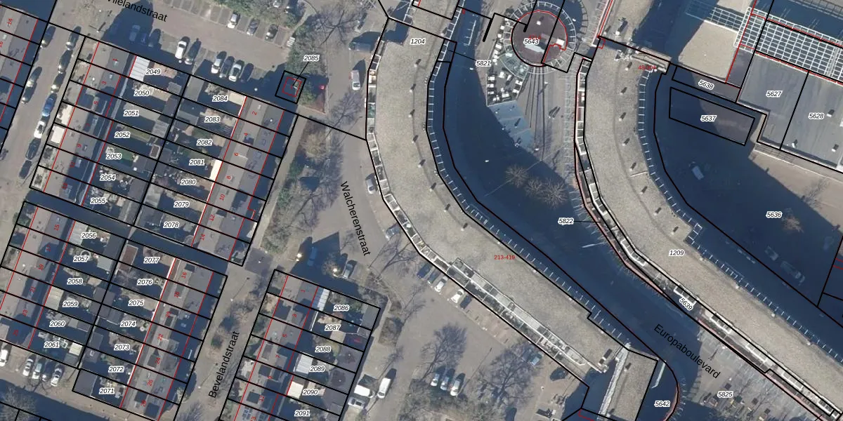 Het perceel waarop Europaboulevard 367 staat heeft een oppervlakte van 1642 m². Dit is een zeer groot perceel. De perceeloppervlakte wordt geregistreerd door het Kadaster. Gedetailleerde informatie over de maten van dit perceel kunt u vinden in het rapport Kadastrale kaart met maatvoering van Europaboulevard 367.