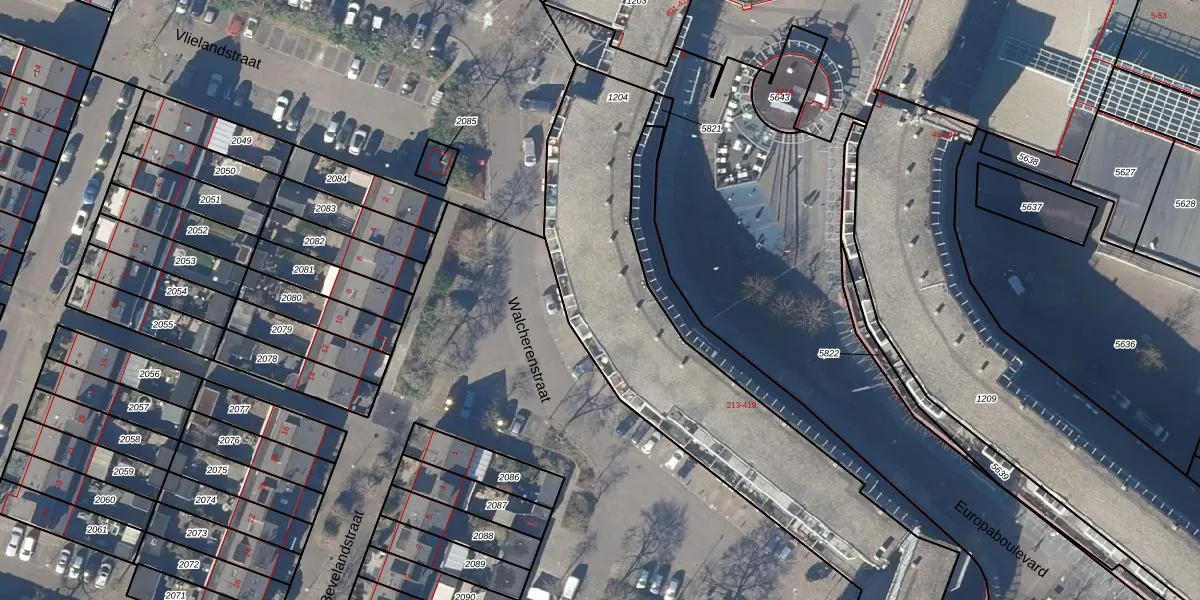 Het perceel waarop Europaboulevard 369 staat heeft een oppervlakte van 1642 m². Dit is een zeer groot perceel. De perceeloppervlakte wordt geregistreerd door het Kadaster. Gedetailleerde informatie over de maten van dit perceel kunt u vinden in het rapport Kadastrale kaart met maatvoering van Europaboulevard 369.