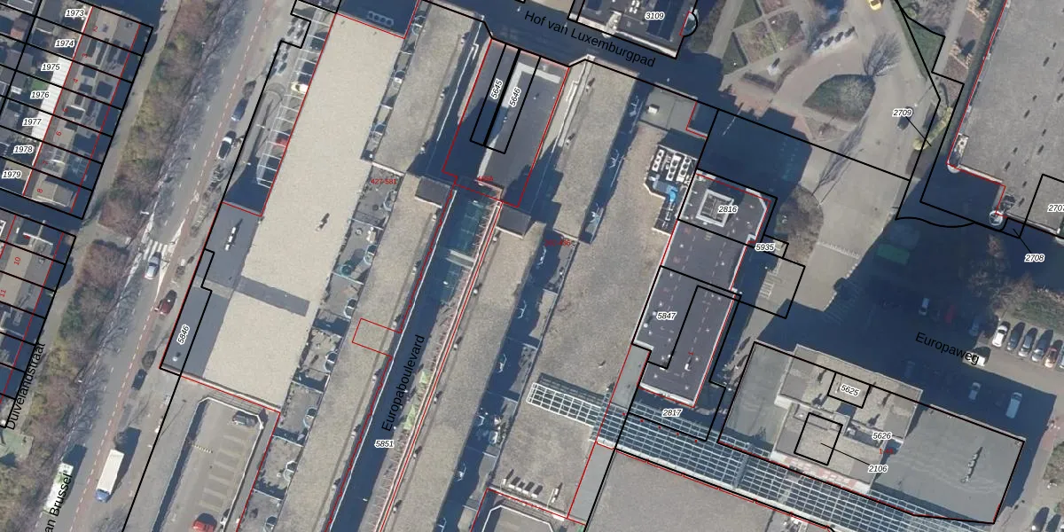 Het perceel waarop Europaboulevard 400 staat heeft een oppervlakte van 1,3 ha. Dit is een zeer groot perceel. De perceeloppervlakte wordt geregistreerd door het Kadaster. Gedetailleerde informatie over de maten van dit perceel kunt u vinden in het rapport Kadastrale kaart met maatvoering van Europaboulevard 400.