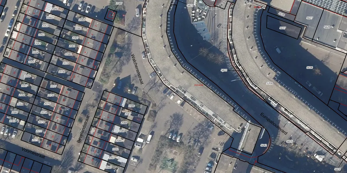 Het perceel waarop Europaboulevard 403 staat heeft een oppervlakte van 1642 m². Dit is een zeer groot perceel. De perceeloppervlakte wordt geregistreerd door het Kadaster. Gedetailleerde informatie over de maten van dit perceel kunt u vinden in het rapport Kadastrale kaart met maatvoering van Europaboulevard 403.