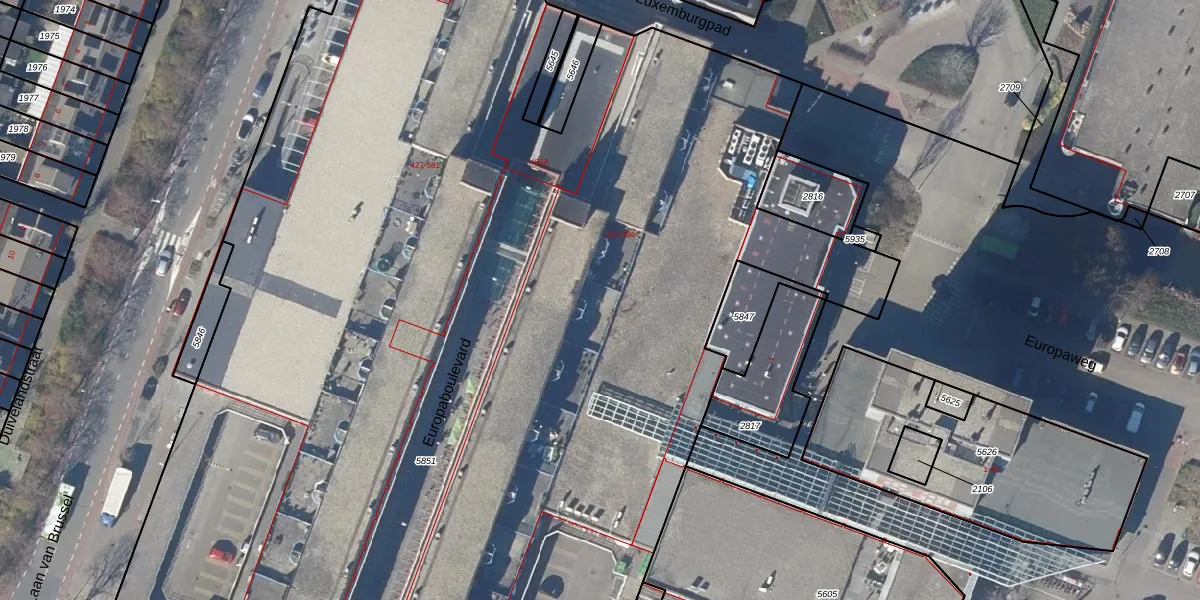 Het perceel waarop Europaboulevard 432 staat heeft een oppervlakte van 1,3 ha. Dit is een zeer groot perceel. De perceeloppervlakte wordt geregistreerd door het Kadaster. Gedetailleerde informatie over de maten van dit perceel kunt u vinden in het rapport Kadastrale kaart met maatvoering van Europaboulevard 432.