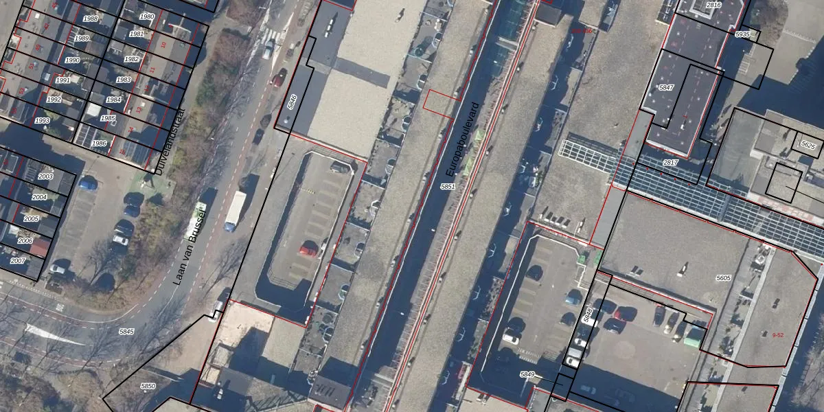 Het perceel waarop Europaboulevard 441 staat heeft een oppervlakte van 1,3 ha. Dit is een zeer groot perceel. De perceeloppervlakte wordt geregistreerd door het Kadaster. Gedetailleerde informatie over de maten van dit perceel kunt u vinden in het rapport Kadastrale kaart met maatvoering van Europaboulevard 441.