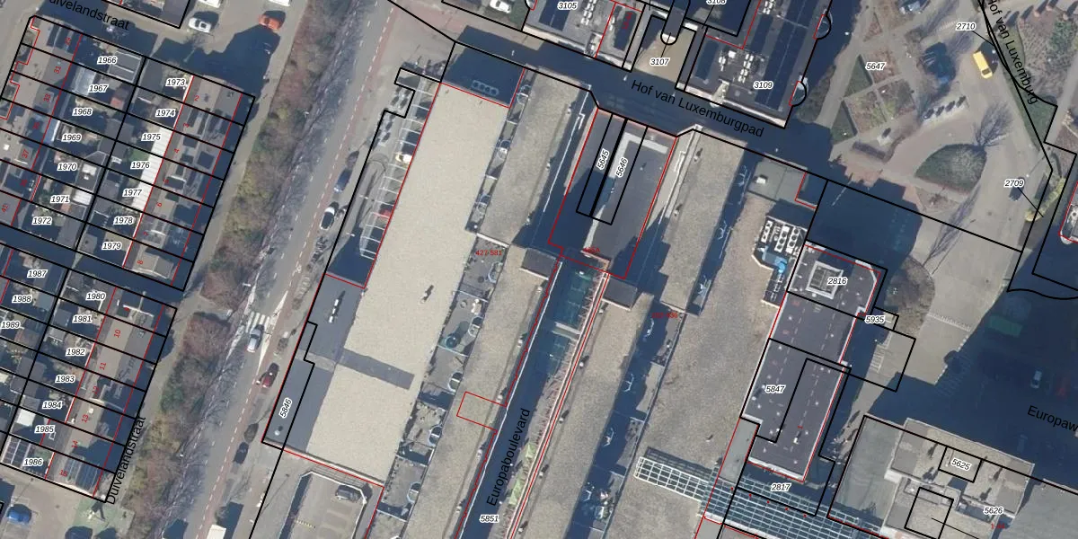 Het perceel waarop Europaboulevard 457 staat heeft een oppervlakte van 1,3 ha. Dit is een zeer groot perceel. De perceeloppervlakte wordt geregistreerd door het Kadaster. Gedetailleerde informatie over de maten van dit perceel kunt u vinden in het rapport Kadastrale kaart met maatvoering van Europaboulevard 457.
