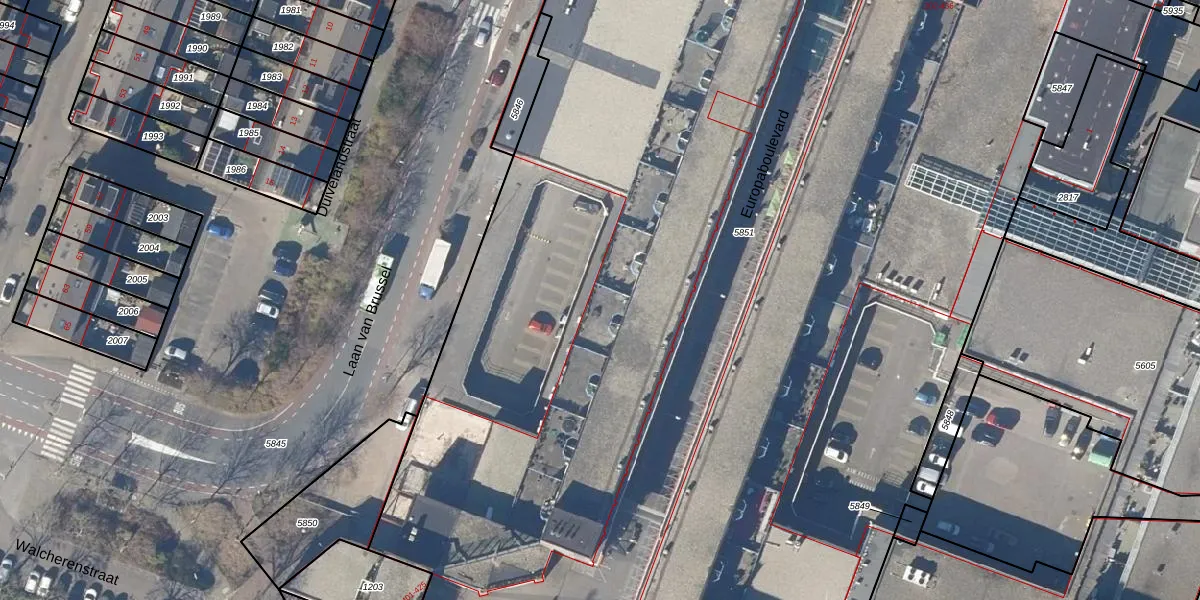 Het perceel waarop Europaboulevard 499 staat heeft een oppervlakte van 1,3 ha. Dit is een zeer groot perceel. De perceeloppervlakte wordt geregistreerd door het Kadaster. Gedetailleerde informatie over de maten van dit perceel kunt u vinden in het rapport Kadastrale kaart met maatvoering van Europaboulevard 499.