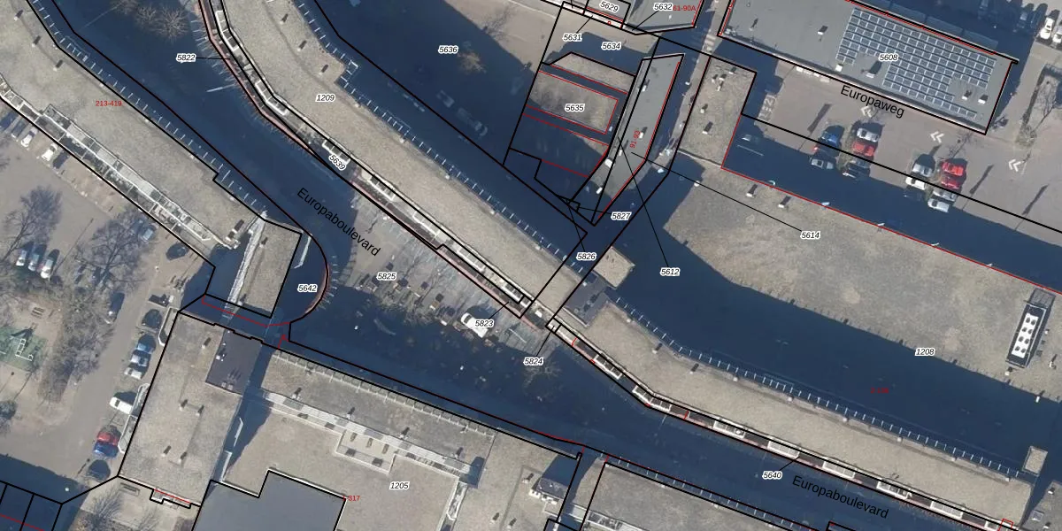 Het perceel waarop Europaboulevard 50 staat heeft een oppervlakte van 1770 m². Dit is een zeer groot perceel. De perceeloppervlakte wordt geregistreerd door het Kadaster. Gedetailleerde informatie over de maten van dit perceel kunt u vinden in het rapport Kadastrale kaart met maatvoering van Europaboulevard 50.