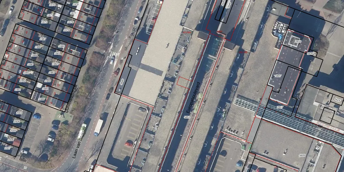 Het perceel waarop Europaboulevard 535 staat heeft een oppervlakte van 1,3 ha. Dit is een zeer groot perceel. De perceeloppervlakte wordt geregistreerd door het Kadaster. Gedetailleerde informatie over de maten van dit perceel kunt u vinden in het rapport Kadastrale kaart met maatvoering van Europaboulevard 535.