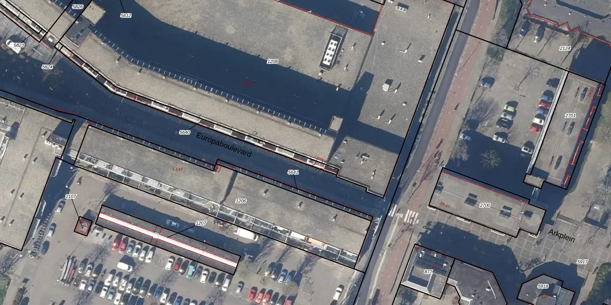 Het perceel waarop Europaboulevard 6 staat heeft een oppervlakte van 6417 m². Dit is een zeer groot perceel. De perceeloppervlakte wordt geregistreerd door het Kadaster. Gedetailleerde informatie over de maten van dit perceel kunt u vinden in het rapport Kadastrale kaart met maatvoering van Europaboulevard 6.