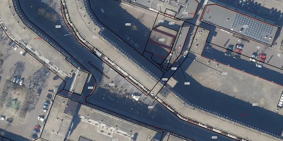 Het perceel waarop Europaboulevard 82 staat heeft een oppervlakte van 1770 m². Dit is een zeer groot perceel. De perceeloppervlakte wordt geregistreerd door het Kadaster. Gedetailleerde informatie over de maten van dit perceel kunt u vinden in het rapport Kadastrale kaart met maatvoering van Europaboulevard 82.