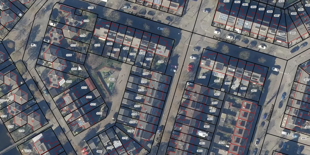 Gebruik de zoekbalk of klik op een perceel voor informatie over de adressen binnen dit perceel.