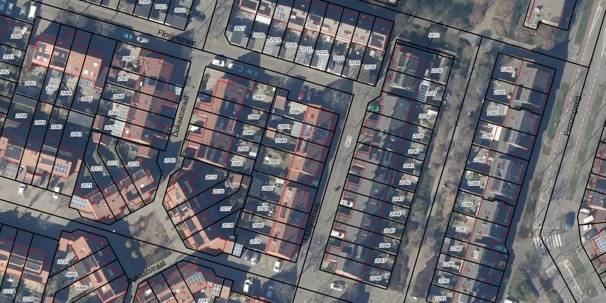 Gebruik de zoekbalk of klik op een perceel voor informatie over de adressen binnen dit perceel.