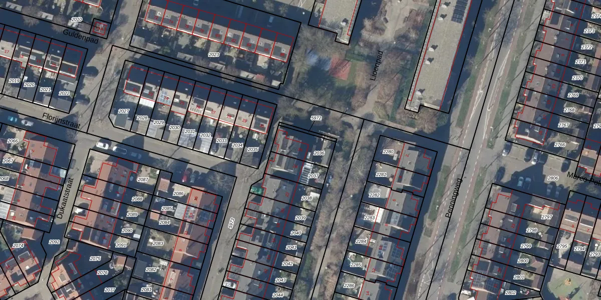 Gebruik de zoekbalk of klik op een perceel voor informatie over de adressen binnen dit perceel.