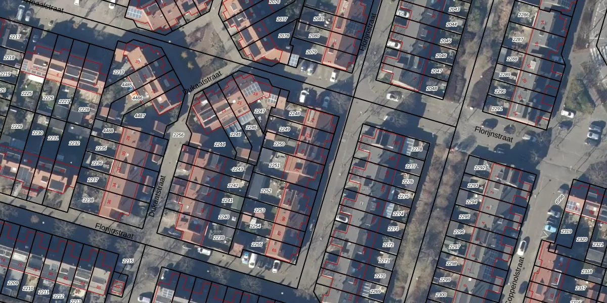 Gebruik de zoekbalk of klik op een perceel voor informatie over de adressen binnen dit perceel.