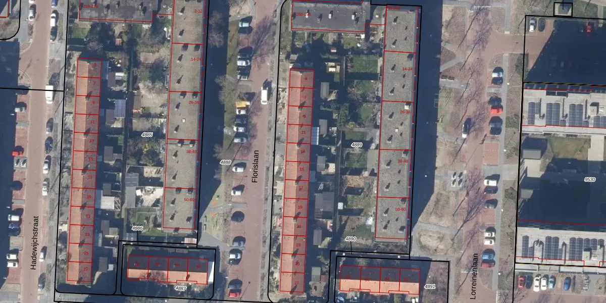 Het perceel waarop Florislaan 13 staat heeft een oppervlakte van 4190 m². Dit is een zeer groot perceel. De perceeloppervlakte wordt geregistreerd door het Kadaster. Gedetailleerde informatie over de maten van dit perceel kunt u vinden in het rapport Kadastrale kaart met maatvoering van Florislaan 13.