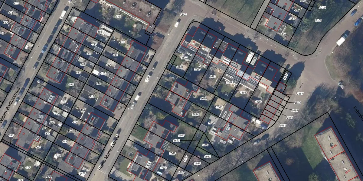 Het perceel waarop Frans Mentonstraat 1 staat heeft een oppervlakte van 297 m². Dit is een middelgroot perceel. De perceeloppervlakte wordt geregistreerd door het Kadaster. Gedetailleerde informatie over de maten van dit perceel kunt u vinden in het rapport Kadastrale kaart met maatvoering van Frans Mentonstraat 1.