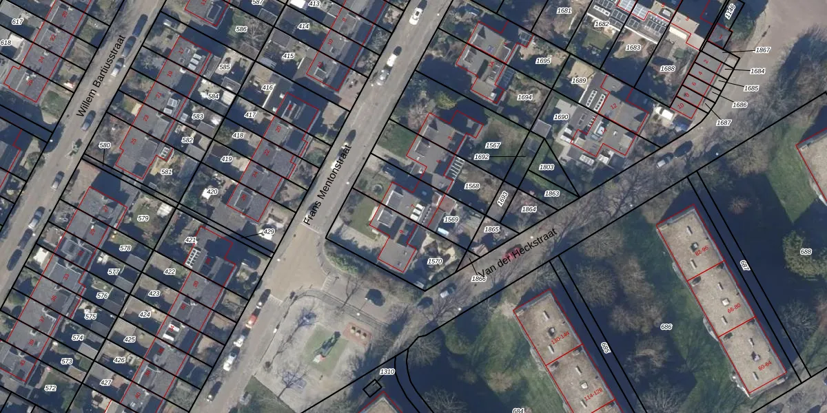 Gebruik de zoekbalk of klik op een perceel voor informatie over de adressen binnen dit perceel.