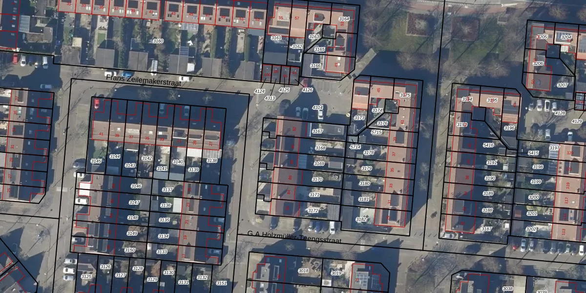 Gebruik de zoekbalk of klik op een perceel voor informatie over de adressen binnen dit perceel.
