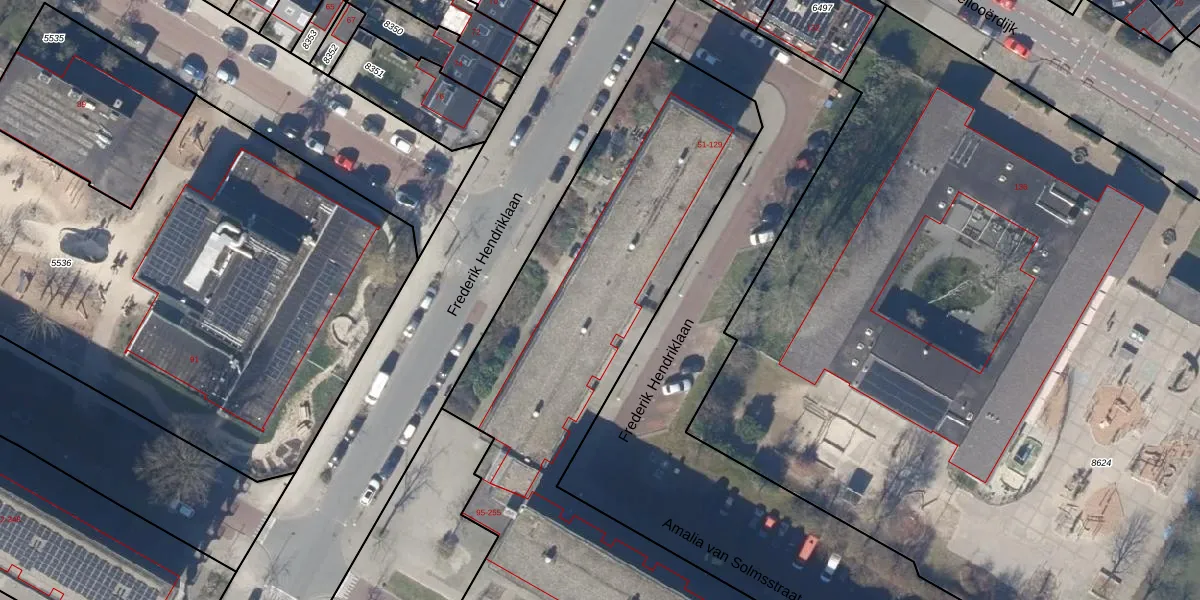 Het perceel waarop Frederik Hendriklaan 107 staat heeft een oppervlakte van 6869 m². Dit is een zeer groot perceel. De perceeloppervlakte wordt geregistreerd door het Kadaster. Gedetailleerde informatie over de maten van dit perceel kunt u vinden in het rapport Kadastrale kaart met maatvoering van Frederik Hendriklaan 107.