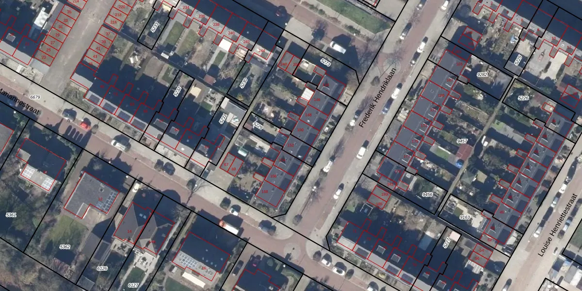Het perceel waarop Frederik Hendriklaan 152 staat heeft een oppervlakte van 166 m². Dit is een middelgroot perceel. De perceeloppervlakte wordt geregistreerd door het Kadaster. Gedetailleerde informatie over de maten van dit perceel kunt u vinden in het rapport Kadastrale kaart met maatvoering van Frederik Hendriklaan 152.