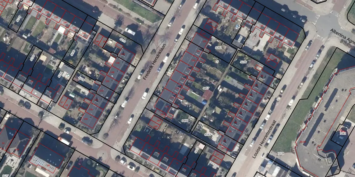 Het perceel waarop Frederik Hendriklaan 175 staat heeft een oppervlakte van 5160 m². Dit is een zeer groot perceel. De perceeloppervlakte wordt geregistreerd door het Kadaster. Gedetailleerde informatie over de maten van dit perceel kunt u vinden in het rapport Kadastrale kaart met maatvoering van Frederik Hendriklaan 175.