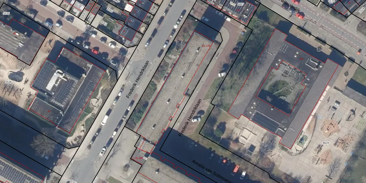Het perceel waarop Frederik Hendriklaan 65 staat heeft een oppervlakte van 6869 m². Dit is een zeer groot perceel. De perceeloppervlakte wordt geregistreerd door het Kadaster. Gedetailleerde informatie over de maten van dit perceel kunt u vinden in het rapport Kadastrale kaart met maatvoering van Frederik Hendriklaan 65.