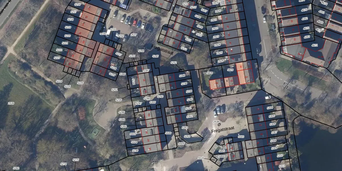 Het perceel waarop Fregatstraat 21 staat heeft een oppervlakte van 92 m². Dit is een klein perceel. De perceeloppervlakte wordt geregistreerd door het Kadaster. Gedetailleerde informatie over de maten van dit perceel kunt u vinden in het rapport Kadastrale kaart met maatvoering van Fregatstraat 21.
