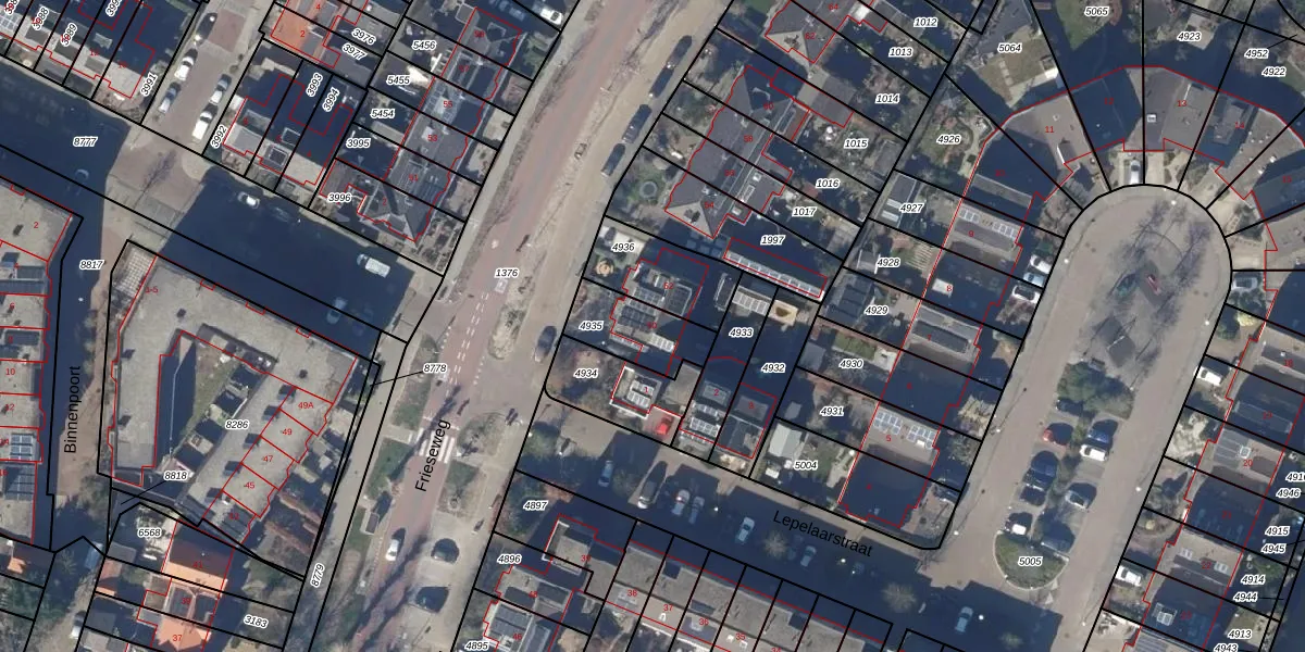 Gebruik de zoekbalk of klik op een perceel voor informatie over de adressen binnen dit perceel.