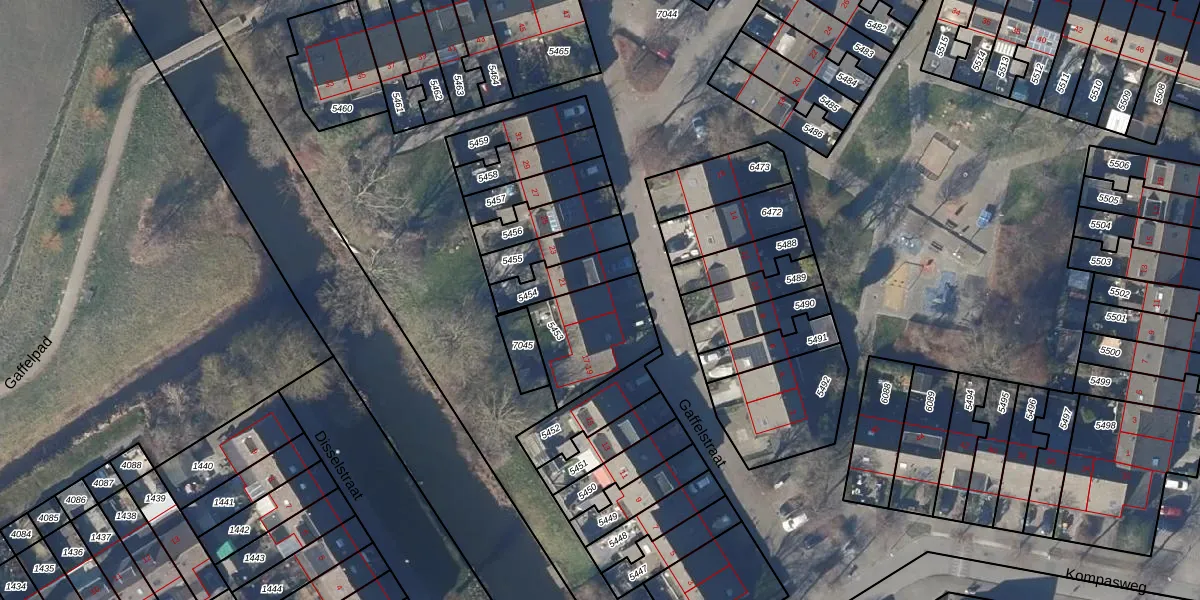 Het perceel waarop Gaffelstraat 19 staat heeft een oppervlakte van 303 m². Dit is een groot perceel. De perceeloppervlakte wordt geregistreerd door het Kadaster. Gedetailleerde informatie over de maten van dit perceel kunt u vinden in het rapport Kadastrale kaart met maatvoering van Gaffelstraat 19.