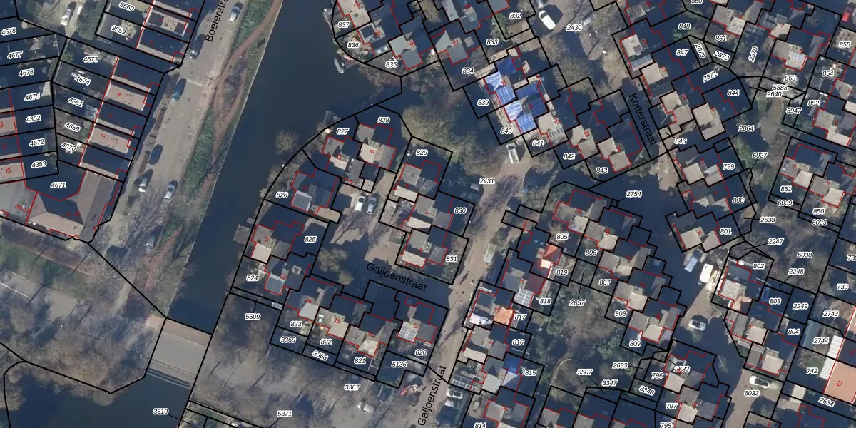 Gebruik de zoekbalk of klik op een perceel voor informatie over de adressen binnen dit perceel.
