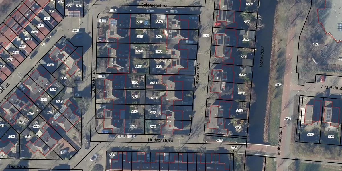 Gebruik de zoekbalk of klik op een perceel voor informatie over de adressen binnen dit perceel.