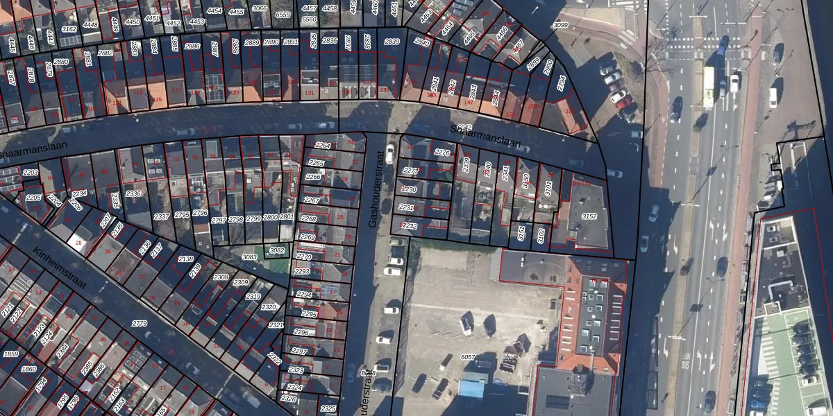 Gebruik de zoekbalk of klik op een perceel voor informatie over de adressen binnen dit perceel.