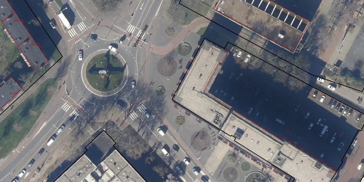 Het perceel waarop Geert Groteplein 33 staat heeft een oppervlakte van 5015 m². Dit is een zeer groot perceel. De perceeloppervlakte wordt geregistreerd door het Kadaster. Gedetailleerde informatie over de maten van dit perceel kunt u vinden in het rapport Kadastrale kaart met maatvoering van Geert Groteplein 33.