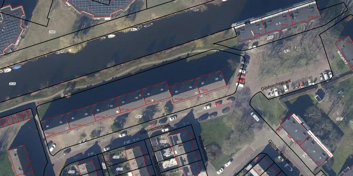 Gijsbrechtstraat 102 is gelegen op kadastraal perceel AMR01F4547. Deze kadastrale aanduiding is uniek en wordt gebruikt door het Kadaster om eigendomsrechten en andere zakelijke rechten vast te leggen. Het perceel maakt onderdeel uit van de kadastrale gemeente Alkmaar.