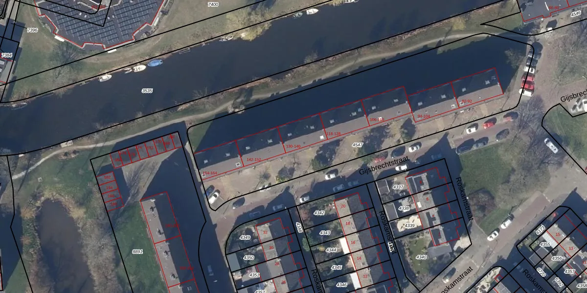 Het perceel waarop Gijsbrechtstraat 130 staat heeft een oppervlakte van 3250 m². Dit is een zeer groot perceel. De perceeloppervlakte wordt geregistreerd door het Kadaster. Gedetailleerde informatie over de maten van dit perceel kunt u vinden in het rapport Kadastrale kaart met maatvoering van Gijsbrechtstraat 130.