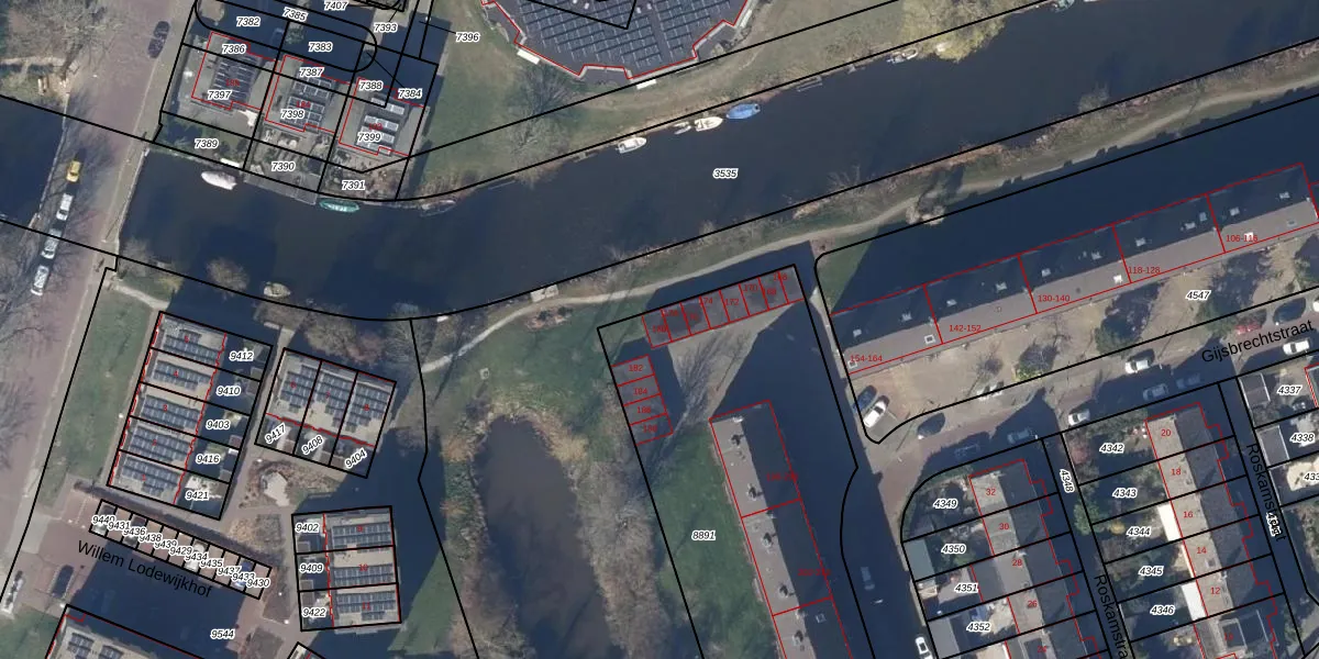 Het perceel waarop Gijsbrechtstraat 180 staat heeft een oppervlakte van 2210 m². Dit is een zeer groot perceel. De perceeloppervlakte wordt geregistreerd door het Kadaster. Gedetailleerde informatie over de maten van dit perceel kunt u vinden in het rapport Kadastrale kaart met maatvoering van Gijsbrechtstraat 180.