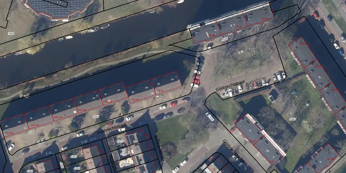 Het perceel waarop Gijsbrechtstraat 84 staat heeft een oppervlakte van 3250 m². Dit is een zeer groot perceel. De perceeloppervlakte wordt geregistreerd door het Kadaster. Gedetailleerde informatie over de maten van dit perceel kunt u vinden in het rapport Kadastrale kaart met maatvoering van Gijsbrechtstraat 84.