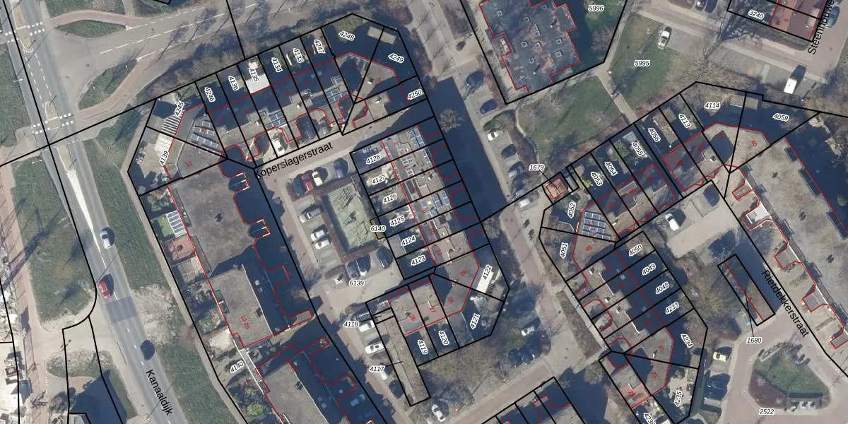 Gebruik de zoekbalk of klik op een perceel voor informatie over de adressen binnen dit perceel.