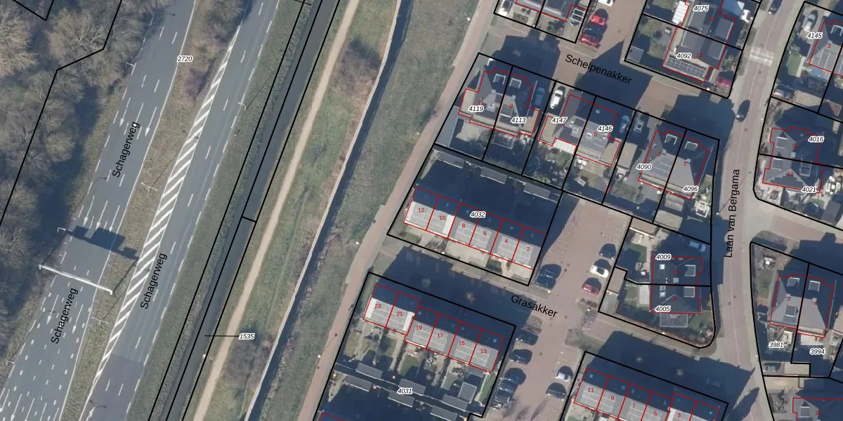 Grasakker 12 is gelegen op kadastraal perceel AMR01L4032. Deze kadastrale aanduiding is uniek en wordt gebruikt door het Kadaster om eigendomsrechten en andere zakelijke rechten vast te leggen. Het perceel maakt onderdeel uit van de kadastrale gemeente Alkmaar.