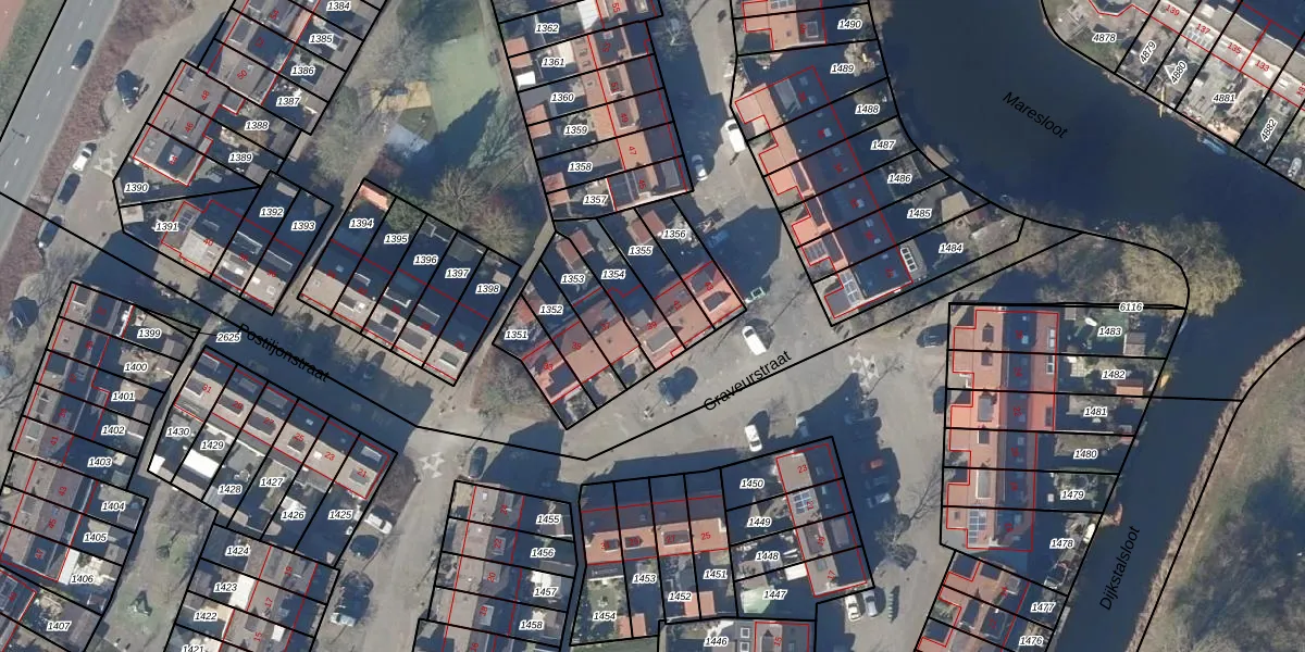 Gebruik de zoekbalk of klik op een perceel voor informatie over de adressen binnen dit perceel.